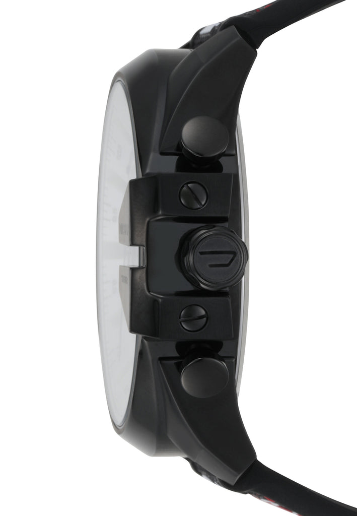Diesel Mega Chief Chronograph Black Dial Red Silicone Strap Watch For Men